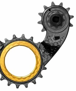 Les galets en polymer sont plutôt silencieux mais peu durables. Les galets en aluminium répercutent quant à eux beaucoup plus le son du contact avec la chaine en augmentant ainsi le bruit de la transmission. AbsoluteBlack propose donc une toute nouvelle génération de galets qui réduisent le bruit de la transmission de 12 à 14 dB comparé avec les galets d’origine. Cela représente plus de 60% de réduction de bruit soit une transmission quasiment silencieuse. Pour cela la marque utilise une technologie brevetée qui repose sur des caoutchoucs XRING qui amortissent les chocs de la chaine contre les galets et eliminent ainsi tous les bruits parasites.