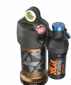 L’amortisseur Fox Float X a été développé pour répondre à la demande croissante d’amortisseurs à bonbonne sur des vélos de trail et all mountain. Il est donc doté d’un réservoir dont la taille a été optimisée en fonction de l’entraxe de l’amortisseur afin de le rendre compatible avec davantage de cadres. Côté fonctionnement, le Float X adopte un piston haute capacité, un tout nouveau tampon de fin de course MCU et un circuit de compression / blocage indépendant (ajustable sur deux positions) .. L’ensemble des molettes de réglage de compression, détente, blocage ainsi que la valve d’air ont été repositionnés pour faciliter leur accès.