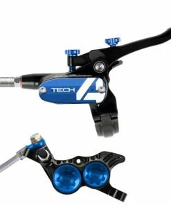 Son maitre cylindre est maintenant équipé de pivot levier monté sur roulements à billes et de nouveaux joints internes réduisant les frictions. L’augmentation de la démultiplication du levier d’environ 30% offre un meilleur feeling et une plus grande puissance tout en réduisant la fatique musculaire. La fixation du maitre cylindre du Tech 4 sur le guidon se fait par un système de collier à charnière très facile d’installation et compatible avec la fixation directe des commandes Shimano ISPEC EV et SRAM Matchmaker en utilisant des adaptateur vendus séparément. Toujours d’actualité, les vis BPC et Reach Adjust permettent d’ajuster la garde du levier et le contact plaquettes sans outil .