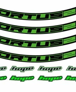 Kit de stickers de personnalisation pour roues Hope, compatible avec les jantes Fortus 26 en version 27.5″. Disponible en 6 couleurs : Bleu, Orange, Rouge, Vert, Argent, Violet