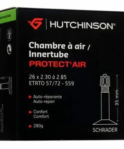 Les chambres à air anticrevaison Hutchinson Protect’air 26″ contiennent du liquide préventif afin de reboucher les trous jusqu’à 3 mm. Elles sont disponibles en plusieurs dimensions et tailles de valves.
