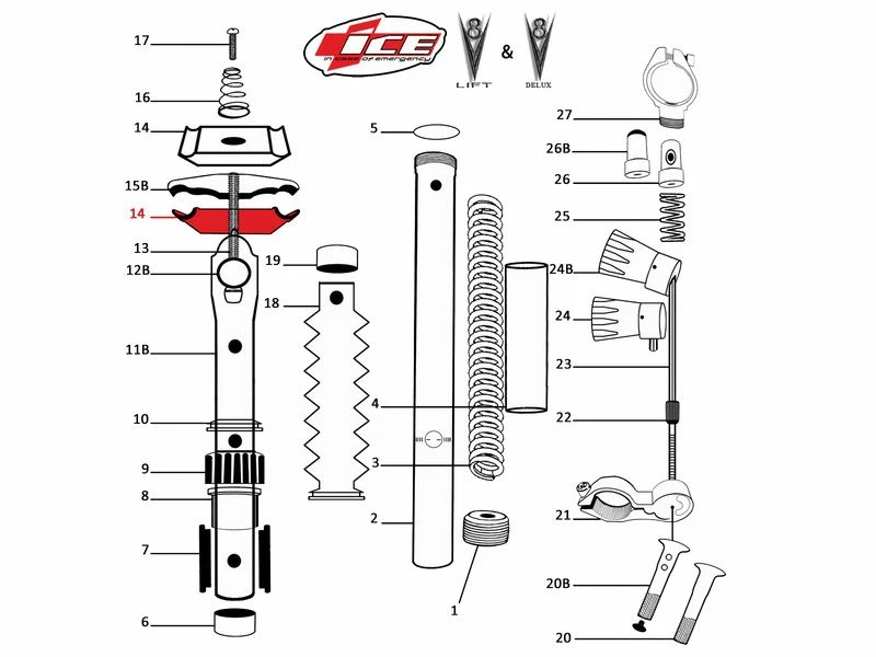 Ce chariot inférieur Ice LIFT-14 en aluminium est compatible avec les tiges télescopiques Ice Lift et V8 Delux.