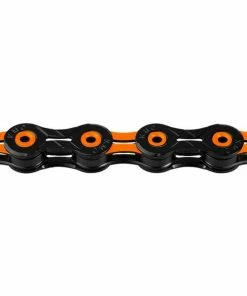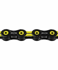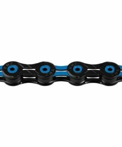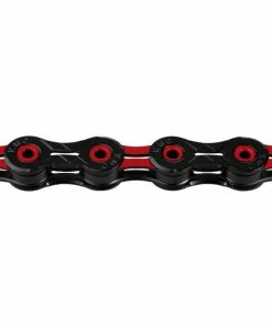 La chaine KMC DLC 11 vitesses compte désormais 118 maillons. Tous ajourés ils bénéficient du traitement Titanium Carbon Nitride (TiCN) qui augmente sensiblement la résistance aux frictions et à l’usure. Les passages de vitesses sont ainsi encore plus efficaces et précis. Les rivets, creux eux aussi, et les rollers sont conçus avec un traitement thermique unique qui se rapproche du procédé de fabrication des diamants de synthèse. Ils sont ainsi ultra résistants et offre une durée de vie inégalée. Pour ne rien gâcher cette KMC DLC 11 est particulièrement esthétique et disponible en plusieurs coloris.
