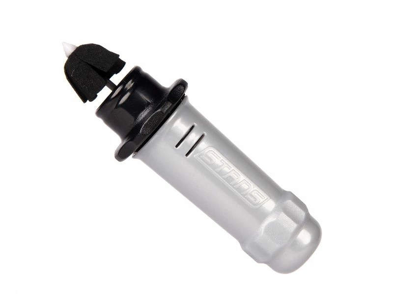 Qu’est-ce que le Notubes DART ? Le DART est la solution de Stan’s pour réparer les pneus endommagés plus rapidement, plus facilement et mieux que les outils existants. Tandis que les outils traditionnels essaient simplement de boucher la crevaison, le DART crée une réaction chimique avec le sealant Stan’s pour former rapidement une liaison étanche à l’air. La double action du DART comprend le remplissage mécanique créé par l’insertion d’un morceau de matériau dans la perforation et une réaction chimique qui active notre sealant. Le DART est la meilleure solution pour réparer et sceller les grosses crevaisons dans les pneus tubeless VTT, route et gravel.