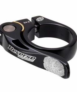 Le collier de selle Reverse Long Life est entièrement usiné CNC à partir d’aluminium 7075 puis anodisé dans de nombreux coloris. Il dispose d’un diamètre de 34,9 mm et le serrage s’effectue via un serrage rapide.