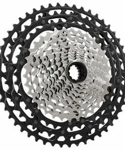 Avec cette XTR M9100 12 vitesses Shimano propose sa cassette la plus évoluée. Véritable bijou d’ingénierie sa conception a nécessité la création d’une nouvelle technologie appelé Hyperglide+. Elle permet un changement de vitesse beaucoup plus rapide, silencieux et sans accoup tout en continuant de pédaler normalement. Les matériaux utilisées pour la construction ont été soigneusement sélectionnés afin de proposer le meilleur rapport poids/durabilité ainsi les petits pignons sont en acier, ceux au centre sont en titane et les 3 plus grands sont en aluminium. A noter que Shimano a également développé une nouvelle interface de corps de roue libre pour la fixation de cette cassette répondant au doux nom de Micro Spline. Ce corps Micro Spline permet de réduire la taille du plus petit pignon à 10 dents pour un meilleur ratio total (comme pour le XD de Sram). Cette cassette XTR M9100 12 vitesses est disponible en 10-45 dents et 10-51 dents.