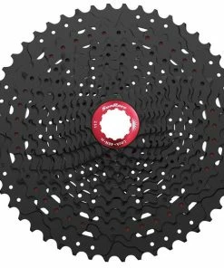 La cassette Sunrace MZ90 dispose de 12 vitesses étagées de 11 à 50 dents. Son gros atout est qu’elle va vous permettre de rouler en 12 vitesses même si vous n’avez pas de corps de roue libre de type XD sur votre roue puisqu’elle s’installe sur les corps de roue libre standards (type Shimano 9-10-11 vitesses). Son ratio de 454% permet de franchir les côtes les plus raides en utilisant un système mono plateau. Elle est compatible avec les dérailleurs Sram 12 vitesses GX Eagle, XO1 Eagle et XX1 Eagle. Ici en couleur Noir elle existe aussi en Argent