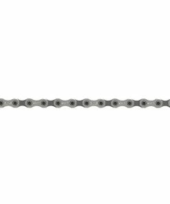 La chaine Sram NX Eagle 12 vitesses rend l’accès aux transmissions 12 vitesses bien plus abordable. Elle reprend la même construction que les versions plus haut de gamme avec la technologie Flow Link qui offre des passages de vitesses souples et silencieux. La différence se fait au niveau des rivets et du traitement de surface de la chaine. En effet cette chaine GX Eagle utilise des rivets pleins, ce qui augmente un tout petit peu le poids de la chaine (8 gr de plus qu’une X01 Eagle…) mais la rend bien plus abordable. Elle ne bénéficie pas du traitement Hard Chrome comme ses ainées elle sera donc probablement moins durable mais avec son petit prix on peut concevoir de la changer plus régulièrement.